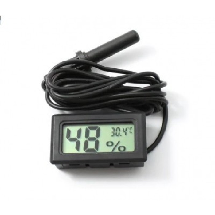 Цифровой гигрометр с термометром,определяет влажность и температуру там , куда помещен датчик.В основном используется в инкубаторах,брудерах,террариумах,теплицах,парниках и т.д.Цифровой термометр измеритель влажности (гигрометр) предназначен для точного измерения влажности и температуры в инкубаторах, брудерах, террариумах, теплицах, парниках и др.Измеритель влажности с термометром безопасен (напряжение питания 1,5 В.) и надёжен, т.к. работает от батареек и не требует дополнительного источника питания.При измерении величины влажности и температуры в изолированном пространстве, например в инкубаторе или брудере, выносной датчик помещается внутрь объекта контроля (длина провода универсального датчика 1,5м.), а сам прибор устанавливается снаружи, чем достигаются более точные показания влажности и температуры, повышается удобство в эксплуатации и экономится электроэнергия.Прибор имеет компактные размеры, оснащён большим, информативным жидкокристаллическим дисплеем, что позволяет применять его везде, где есть необходимость в точных замерах показаний температуры и влажности воздуха. Применение измерителя влажности и температуры:Прибор удобен при использовании в инкубаторе;Использование в удаленных местах путем размещения датчика;В ограниченном пространстве. Не требуется помещения прибора внутрь объема. Достаточно там разместить датчик.Показания одновременно 2-е величины температуру и влажность, позволяют полноценно контролировать процессы развития зародышей птенцов в инкубаторе;Размещение прибора в детской комнате поможет наладить микроклимат для укрепления здоровья детей.Характеристика продукта:Температурный диапазон: -50 °C ~ 70 °C;Диапазон измерения влажности: 10% RH ~ 95% RH;Влажность Точность: 5%;Влажность дисплея Разрешение: 1% RH;Точность температуры: 1 °C;Рабочее напряжение: 1,5 В, одна батарейка LR44 (входит в комплект 2 батарейки);Период дискретизации: 10 секунд;Размер: 48 x 28.5 x 15.2 мм.;ЖК Размер: 35 x 17 мм.;МОНТАЖНЫЕ РАЗМЕРЫ: 46 x 27 x 13.5 мм.;Вес нетто: 24 г без проводов;Цвет: чёрный или белый (зависит от партии товара).Особенности:Длина провода датчика: 1.5 м;Дисплей может быть установлен снаружи инкубатора, в то время как датчик ? внутри, для получения точных показаний.