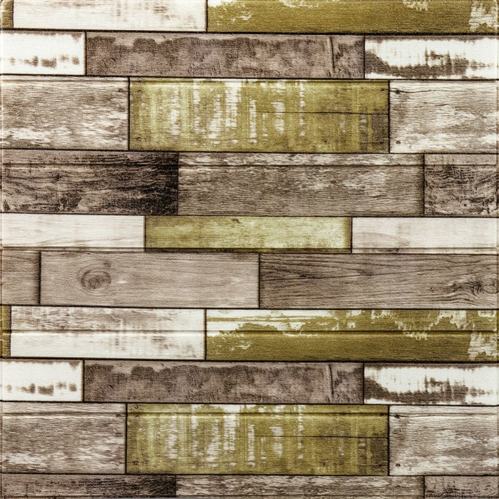 Самоклеюча декоративна 3D панель 700x700x4мм Зелено-коричневе дерево (378) SW-00000883
